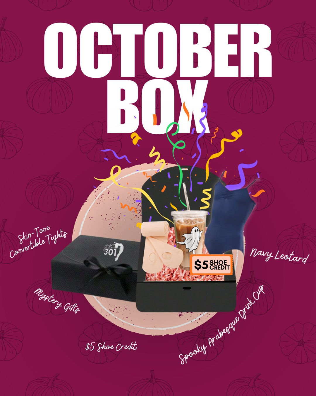 Each month, you’ll receive a beautifully presented box of high-quality dancewear, limited edition Studio 301 merchandise, a $5 shoe credit that can be combined monthly to pay for a free pair of shoes, and mystery gifts your dancer will LOVE!